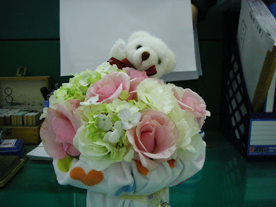 MSN上跟K報告收到花了,上網去看,還真不便宜,而且網路上照片拍得維美,實品的花不夠新鮮,花瓣都有點枯黃了,非不得已還是自己上花店買吧。不過老公的心意無價啦,辦公室的小妹妹比我還興奮呢。今天還剛好是我農曆生日耶,五周年快樂啊,老公。