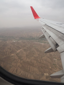 早上六點就出門,走路去搭地鐵,因為不用換車,所以不到七點就到虹橋二航廈了。南京西路站第一班車是5:40,以後可以挑戰七點的飛機。拿台胞證乖乖排隊 check-in,人不算太多。早早去登機口坐著打牌(免費網路挺順的),沒有空橋要搭接駁車。起飛好像晚了,飛機餐意外的好吃,因為有哈蜜瓜。快到時地面的風景很特別,對南方人來說,所以雖然被機翼擋掉不少,還是拍了很多照片。